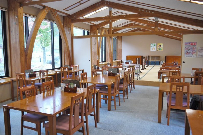 「道の駅 桜の郷荘川」の日帰り温泉施設「桜香の湯」内にあるお食事処。バラエティに富んだメニューは、地元名物の鶏ちゃんや手打ち二八そばなど、郷土料理が豊富にそろっています。