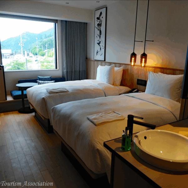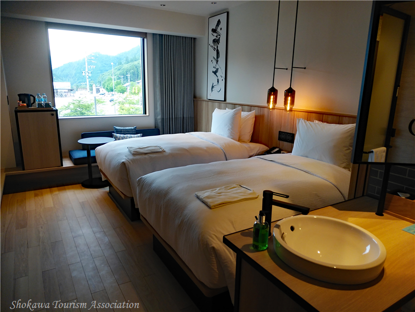 「フェアフィールド・バイ・マリオット・岐阜高山白川郷」は、「道の駅 桜の郷荘川」「荘川温泉 桜香の湯」に隣接する宿泊特化型のホテルです。木のぬくもりを感じる25㎡の客室は、シンプルながらも機能的な空間。無料高速Wi-fiや質の高い眠りを届けてくれるシモンズ製ベッドなどを備え、旅の疲れを癒してくれます。荘川観光の拠点として最適です。