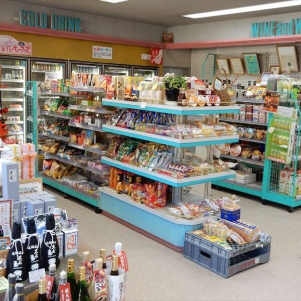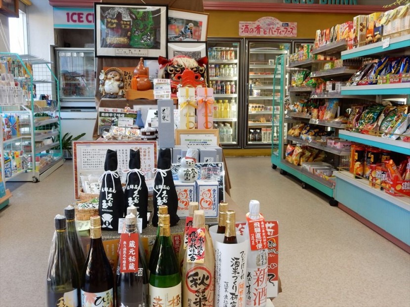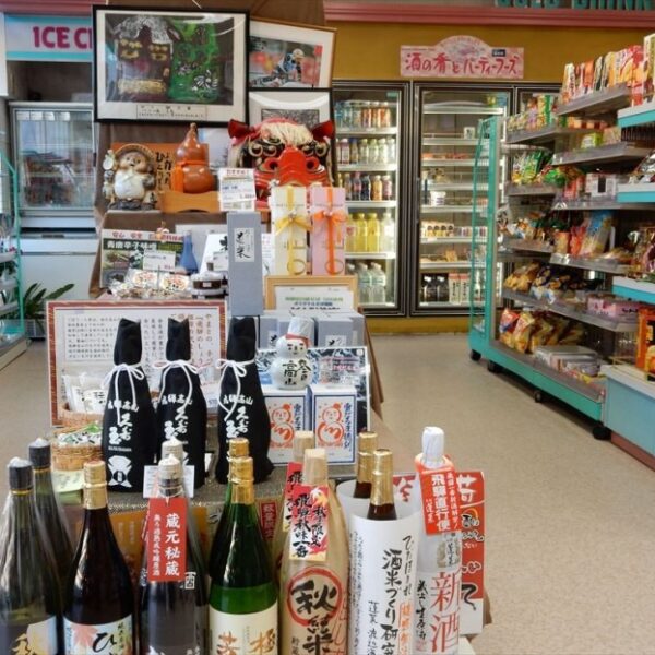 荘川産のどぶろくをはじめ、特産そば100%でつくったそば焼酎「そば道楽」など、どぶろくや地酒を中心に、荘川ならではの名産品を販売しています。ほかにも、タバコやお菓子といった生活雑貨や入漁券の扱いもあります。