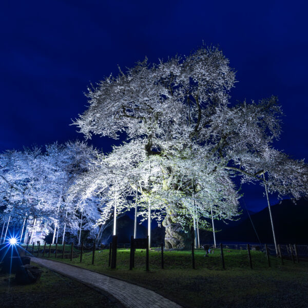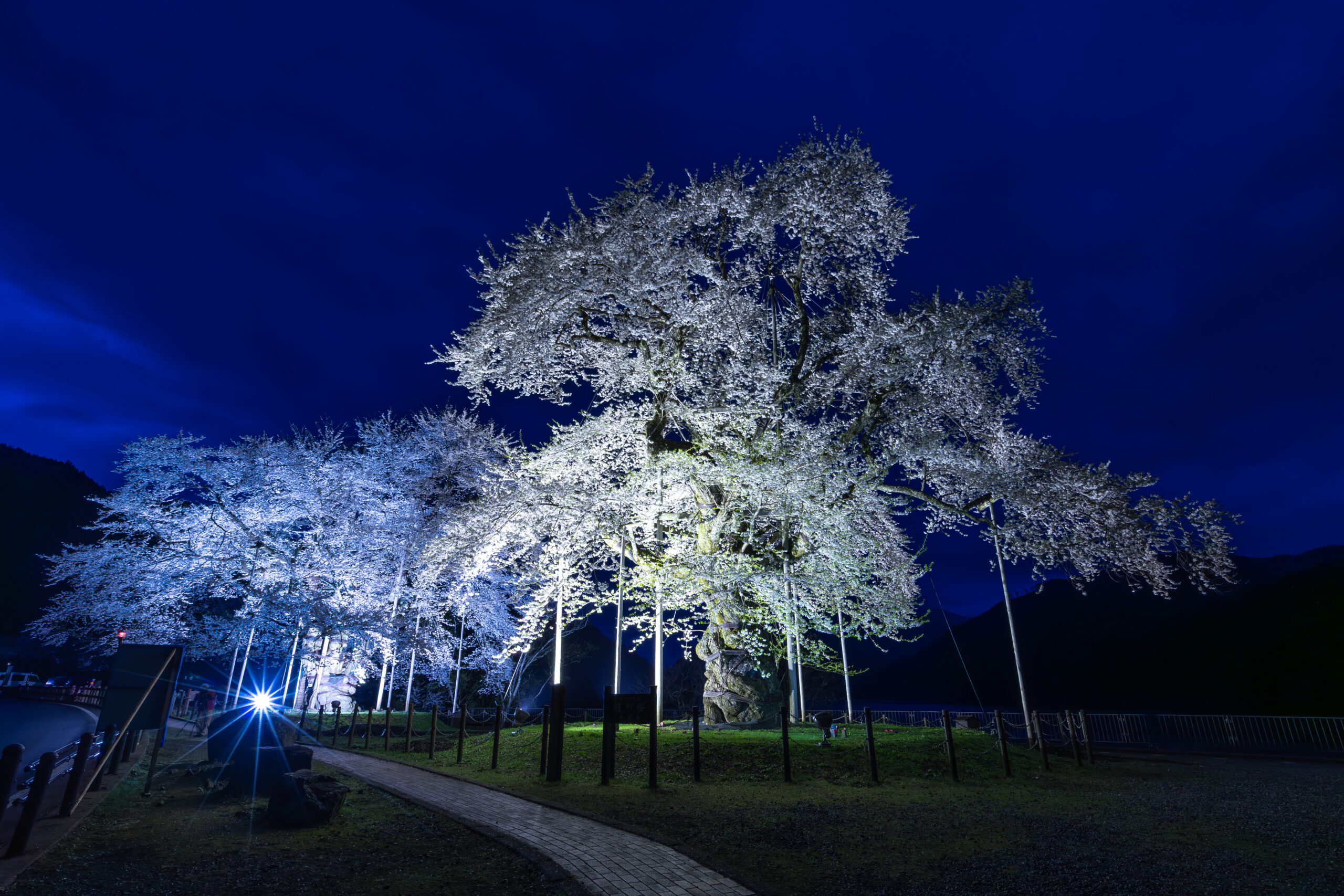 見頃は例年4月下旬~5月上旬。満開前後の3日間は日没から21時までライトアップが行われ、辺りは妖艶な雰囲気に包まれます。