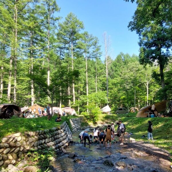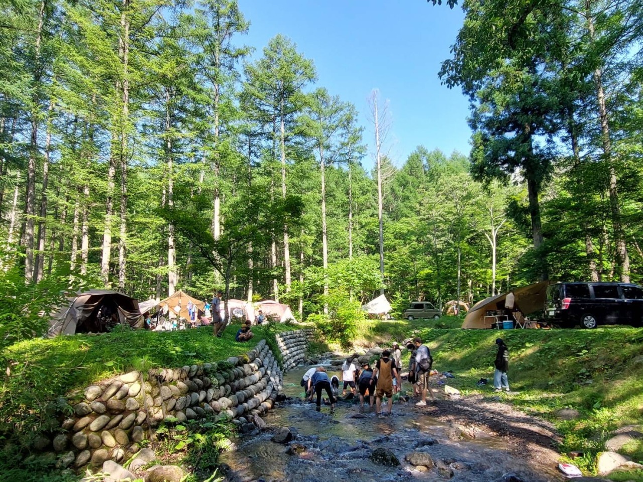 キャンプ場内の小川では水遊びや魚おつかみ取りを、近くの一色川、庄川本流では、イワナやヤマメなどの渓流釣りが楽しめるほか、冬はすぐ隣にあるゲレンデで雪上キャンプやスノーモービル、ソリ滑りも体験できます。